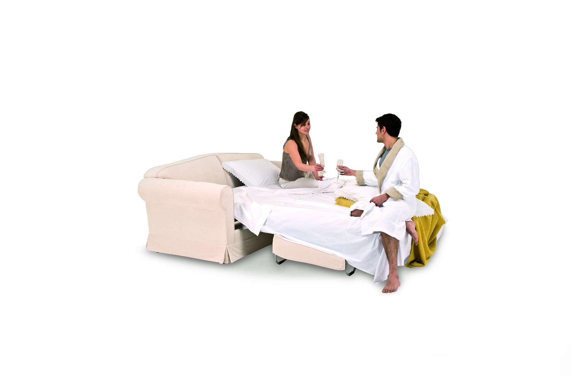 Linee dolci e morbide imbottiture sono i tratti dominanti di un divano in cui si assemblano la pulita bellezza dei volumi e l’eleganza inalterabile del disegno. Divani letto trasformabili dalla forte e decisa personalità, capace di delineare un mondo confortevole, attento ai dettagli e alle finiture ma anche al benessere e alla funzionalità. CAPRI consente di realizzare soluzioni uniche. I braccioli e i cuscini sagomati sono la caratteristica peculiare, proposto in una doppia versione: con piedini in faggio tinto noce o con gonna in versione tradizionalmente classica, elegante e raffinata.